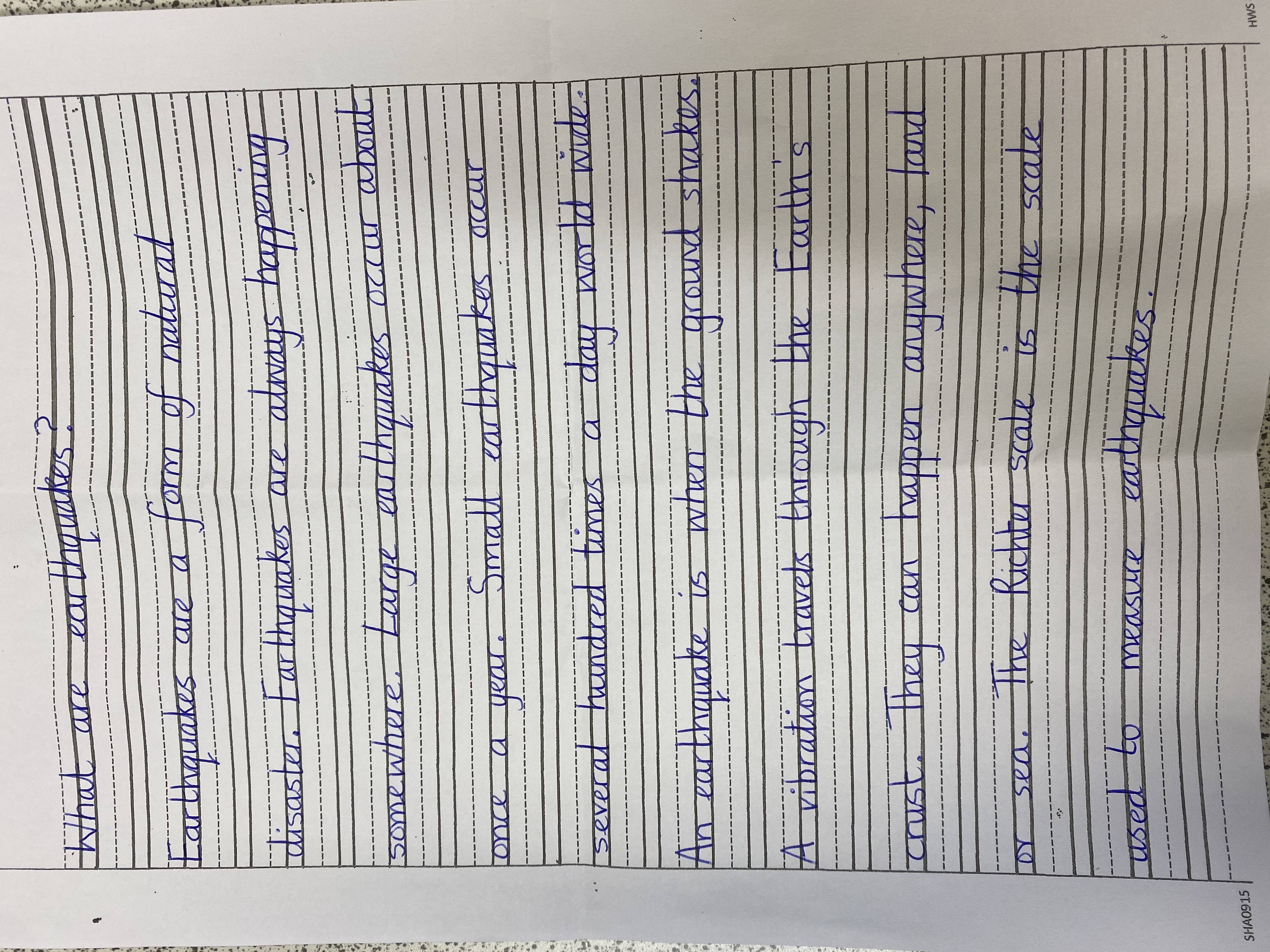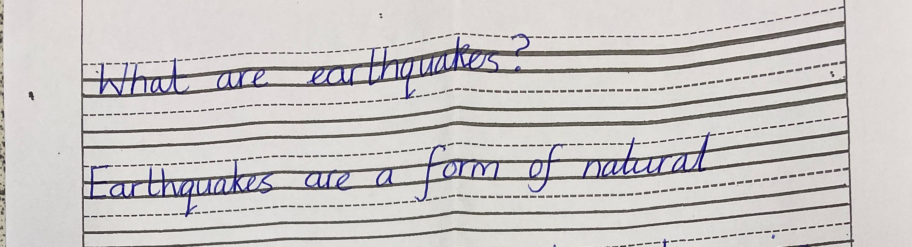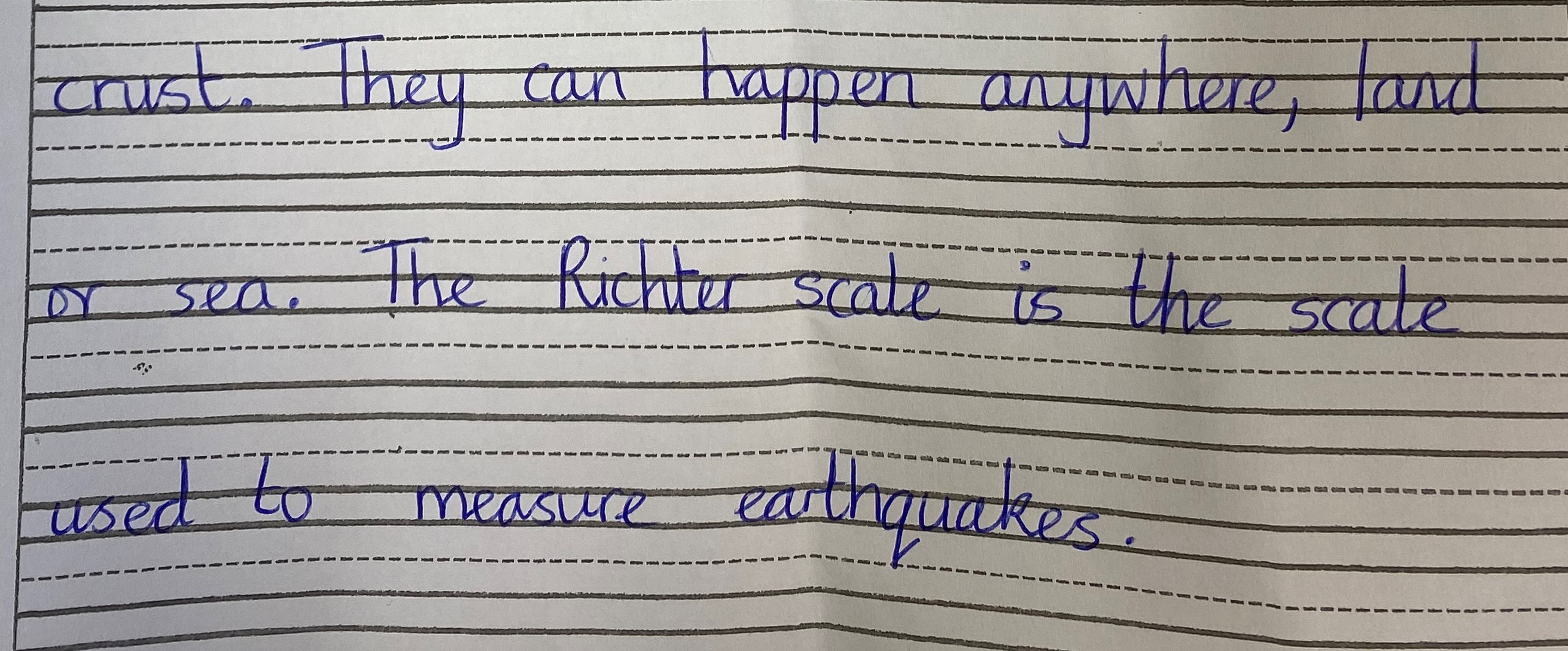 Research these two points using the attached information. Take notes by recording facts next to bullet points. Record any other interesting information that you find out about earth quakes. You may also want to record information as a diagram with labels. Keep this information, along with last weeks' information as it will help you when you write your explanation text next week.
