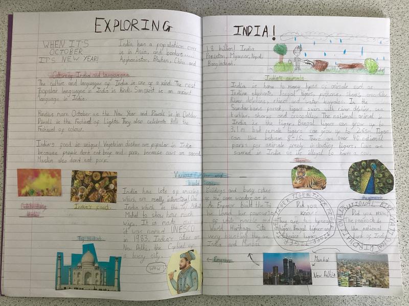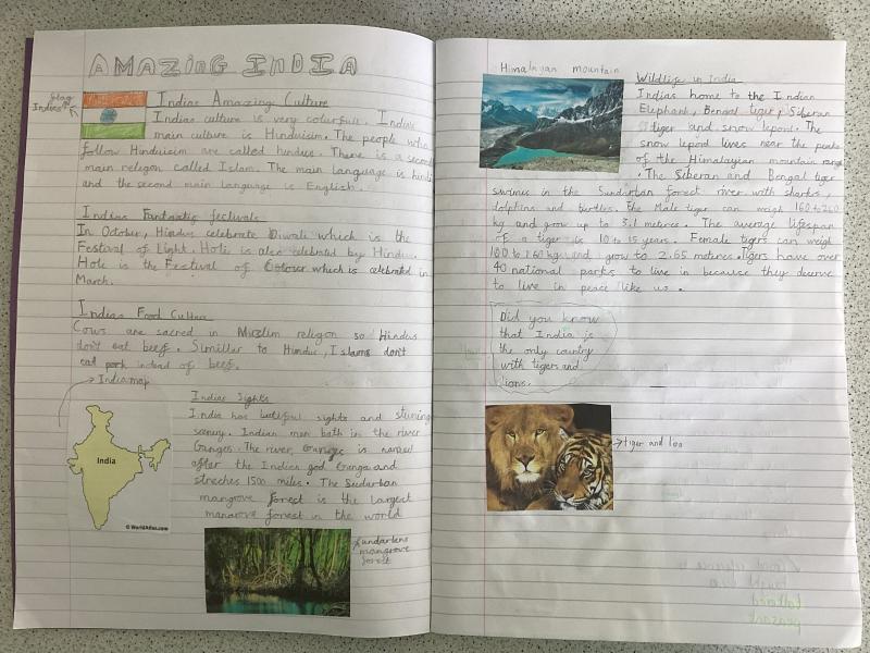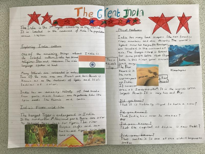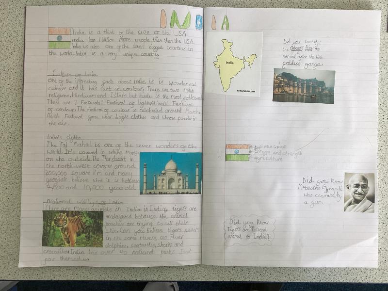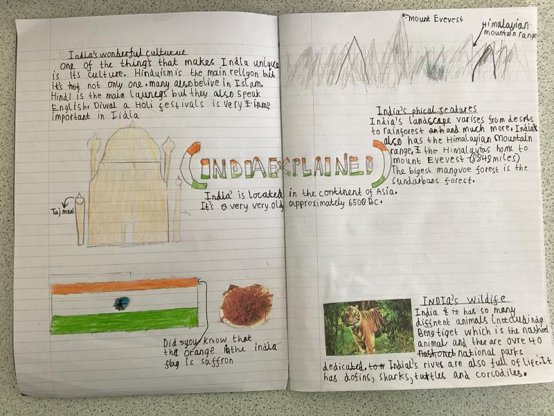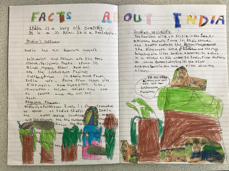 Year 5 have written a report on India. It includes lots of information and fabulous drawings.