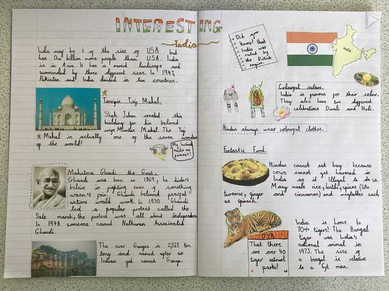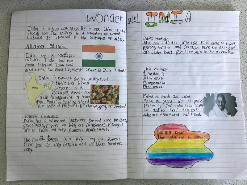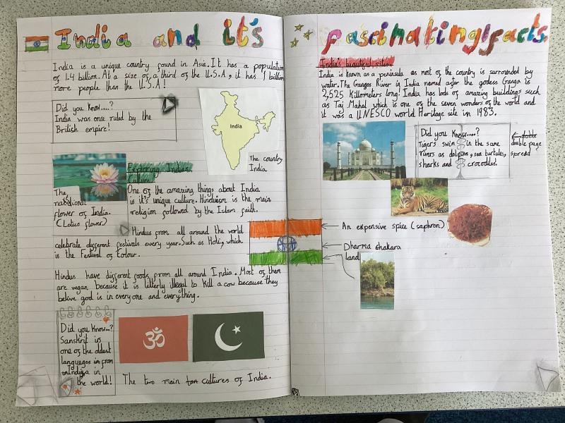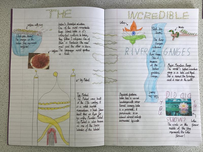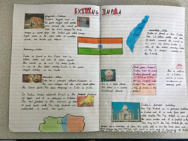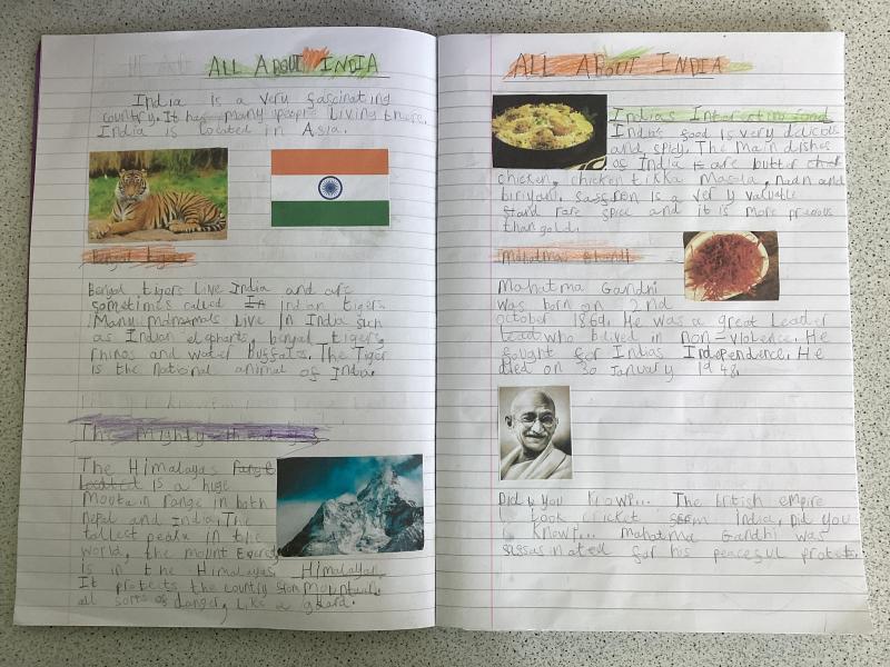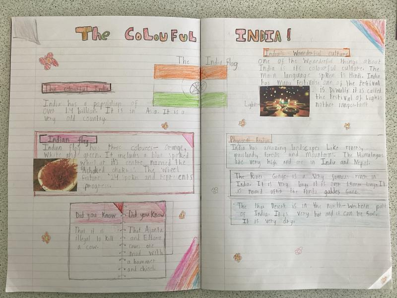 Year 5 have written a report on India. It includes lots of information and fabulous drawings.