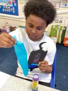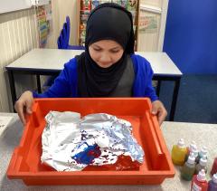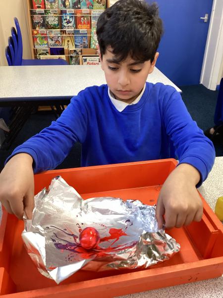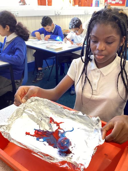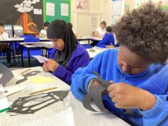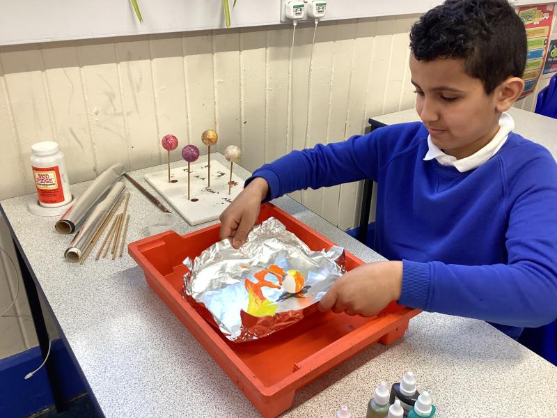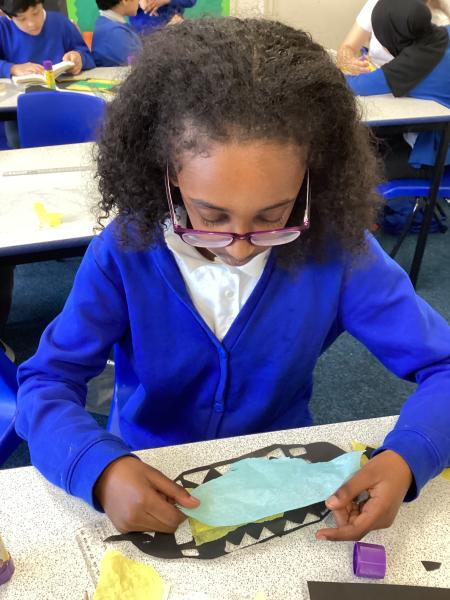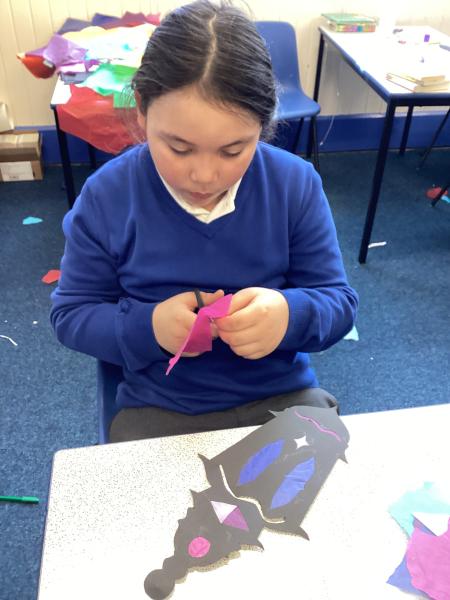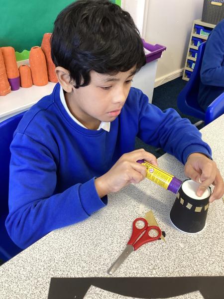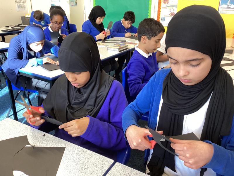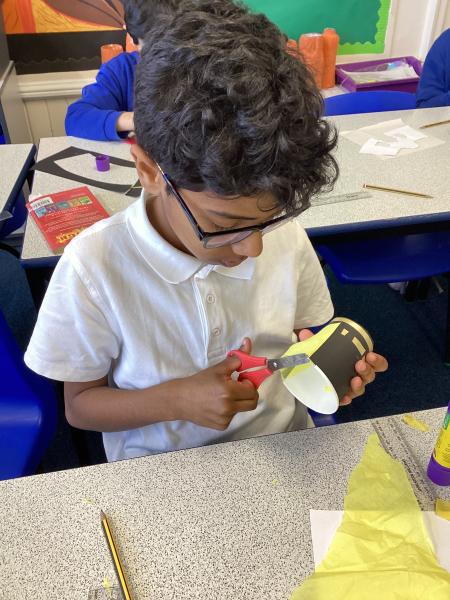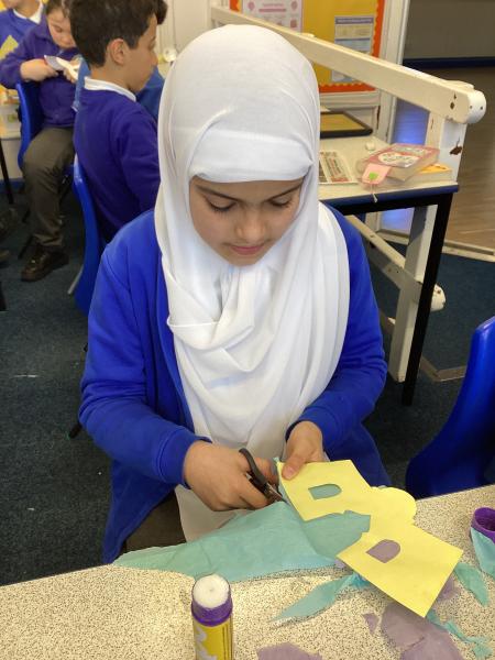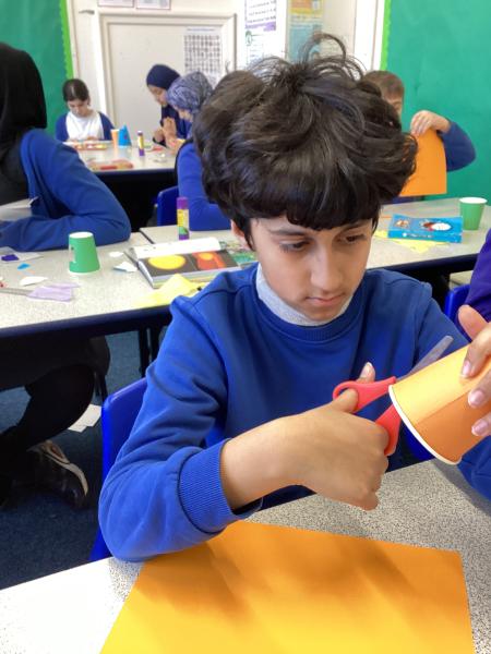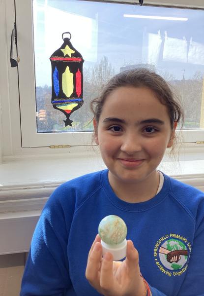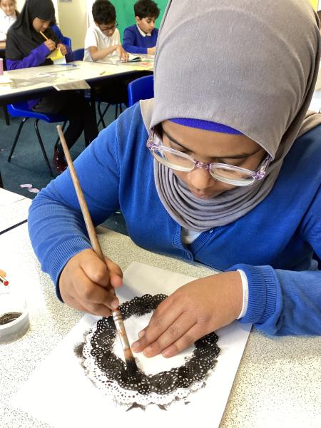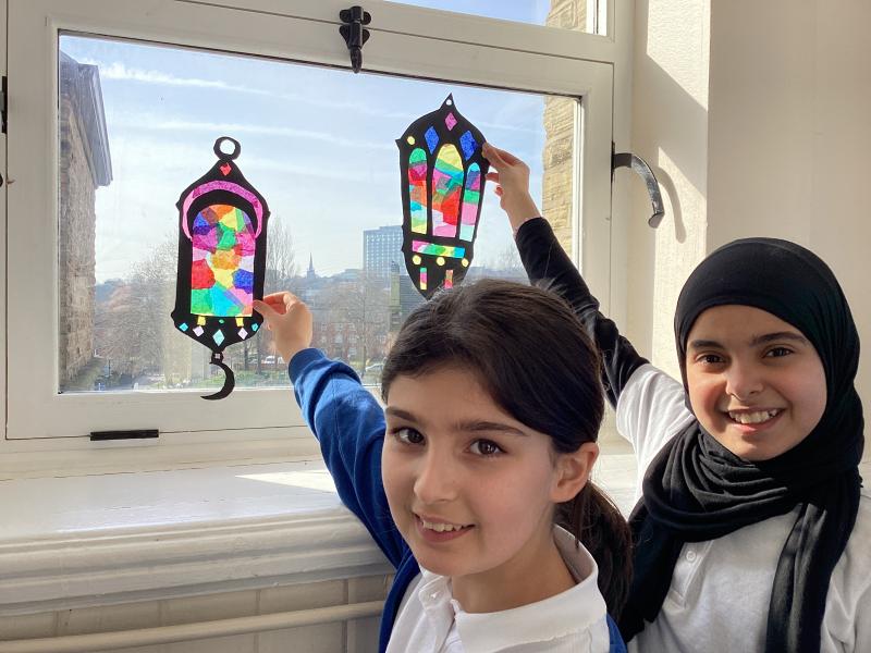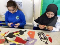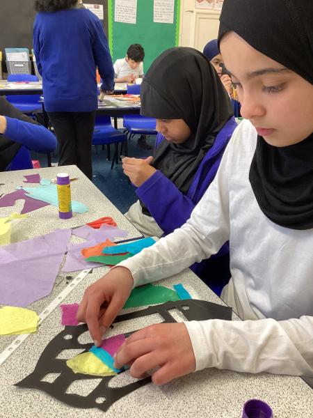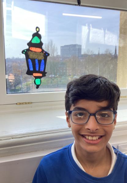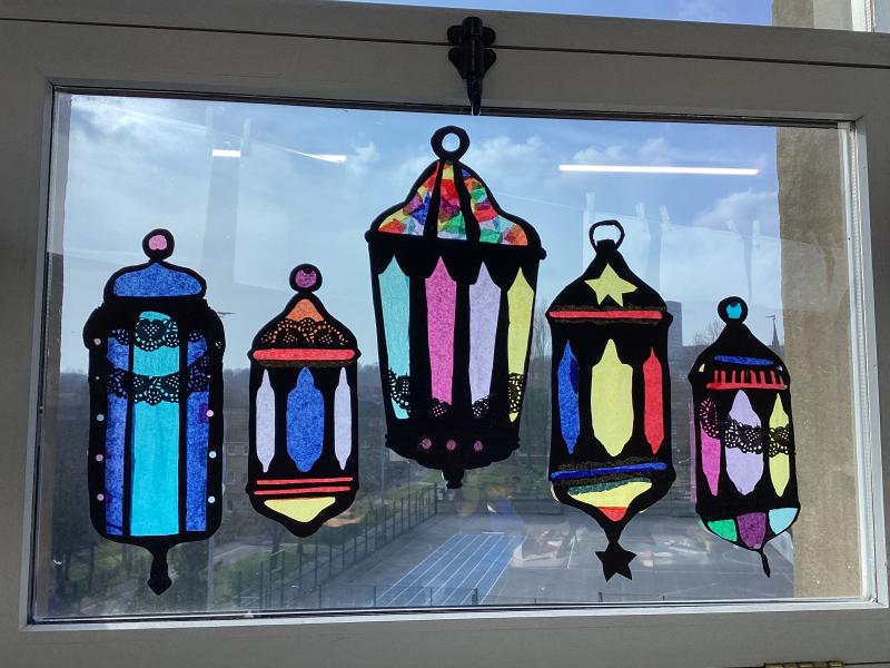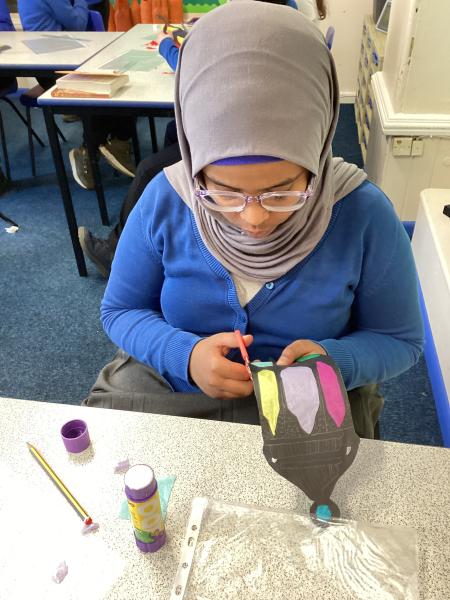 Year 6 created marbled tea lights, sparkling light catchers and glowing mosques. These pieces celebrate the joy, light and togetherness of Eid.
