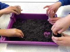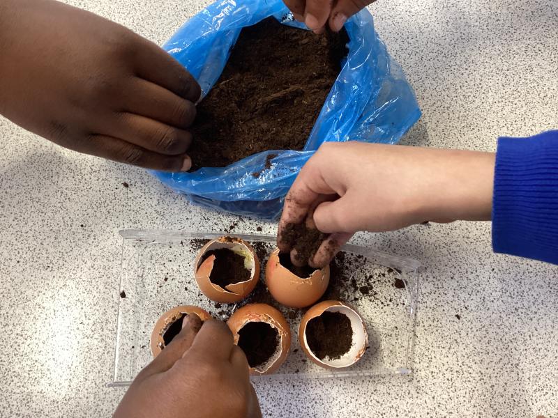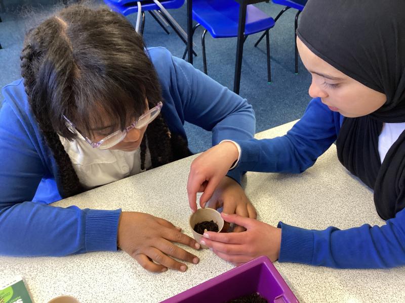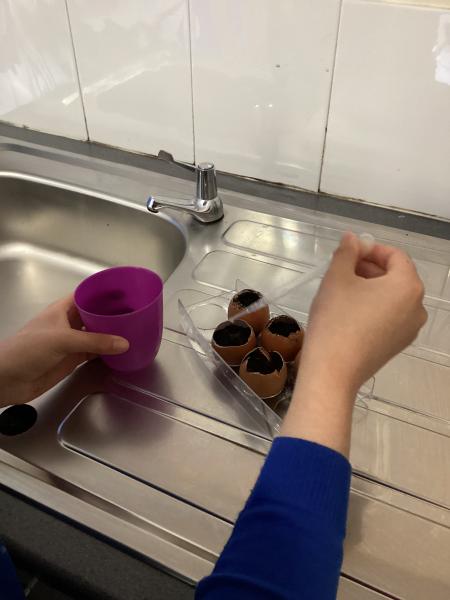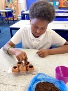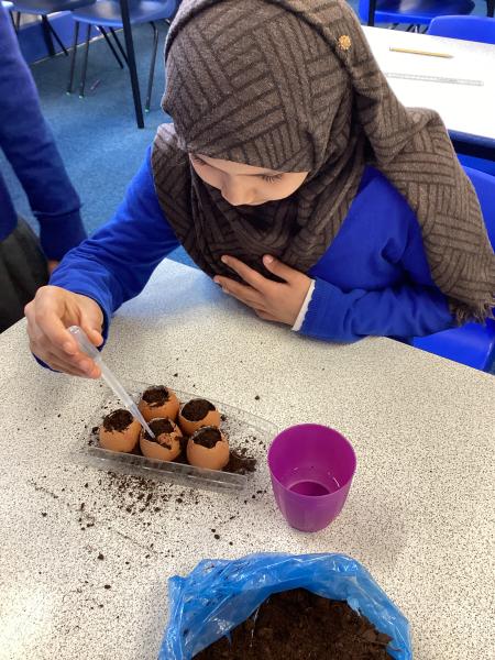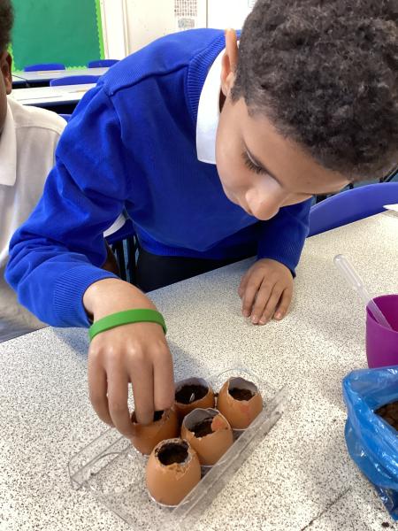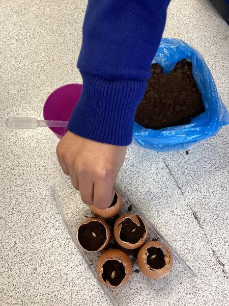 Y6 are growing courgettes. Today, we planted the seeds, now they need looking after. We need to keep them warm, water them regularly and remember to re-pot them when neccessary. We are keeping our fingers crossed for a bumper harvest!
